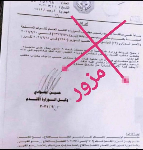 تنفي وزارة الداخلية ما تناقلته بعض مواقع التواصل الاجتماعي بشأن صدور كتاب يتضمن منح قدم لمدة ٦ أشهر للضباط، وسنتين للمنتسبين.