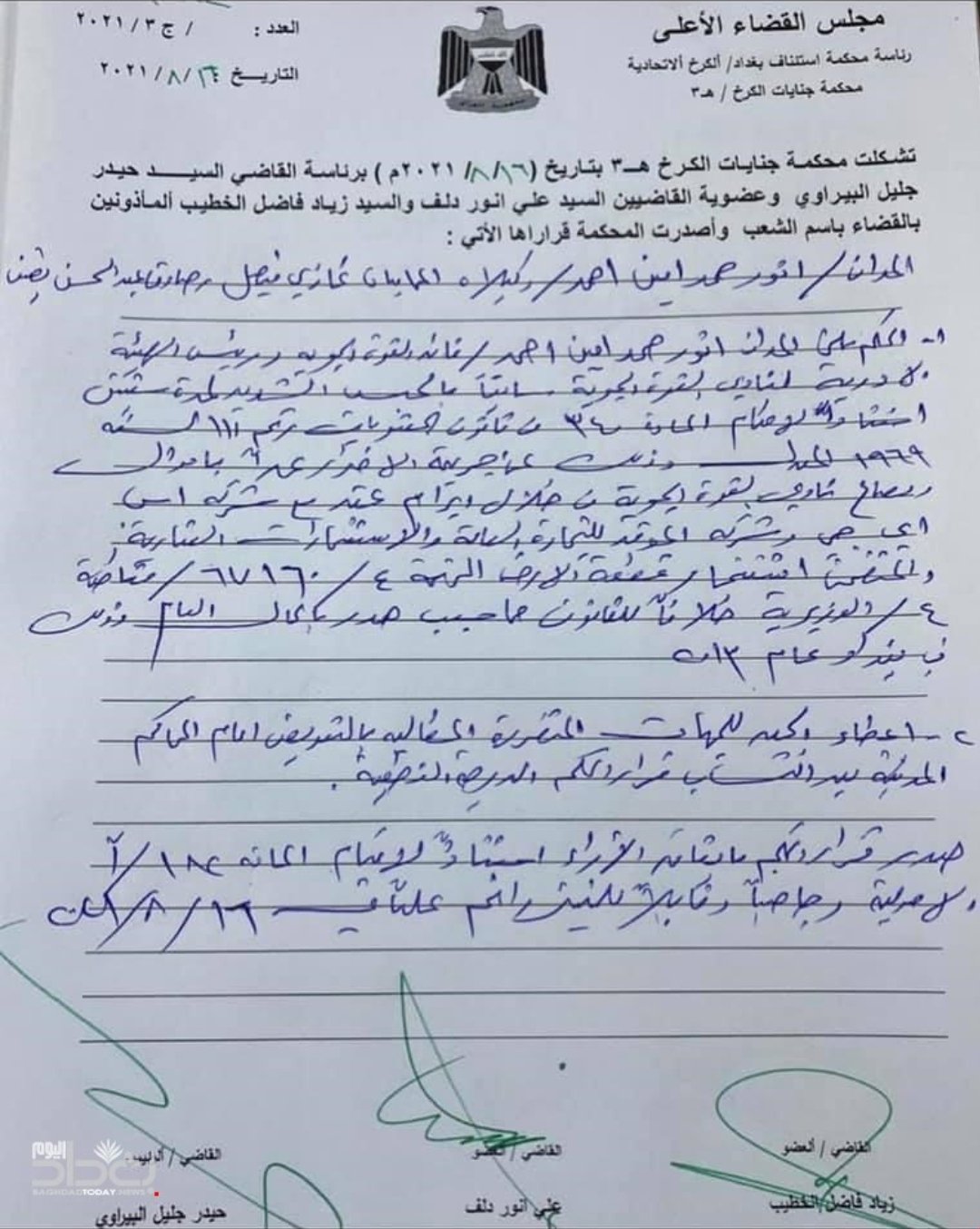 أصدرت محكمة جنايات الكرخ، اليوم الاثنين، حكما بالحبس سنتين على قائد القوة الجوية السابق، انور حمه امين.ووفقا لوثيقة صادرة من محكمة جنايات الكرخ، اطلع عليها صحفي : "تم الحكم على قائد القوة الجوية السابق، انور حمه امين، بالسجن لمدة عامين على خلفية تورطه بقضايا فساد".