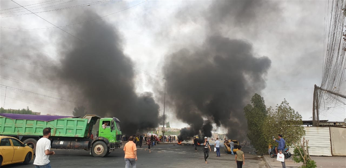 وقال مصدر امني في حديث لـ وكالة من كربلاء الخبر ، إن "اعدة الدخان تصاعدت وغطت مناطق عدة من وسط وشرق العاصمة بغداد نتيجة حرق الاطارات".