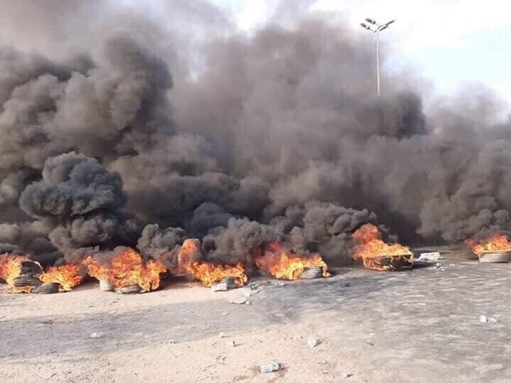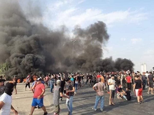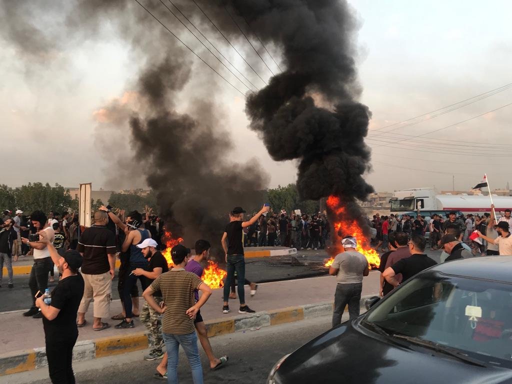 وقال مصدر في حديث لـ من كربلاء الخبر إن "متظاهرين اضرموا النار في الاطارت وسط الشوارع في منطقة الدورة فضلاً عن تقاطع درويش ".