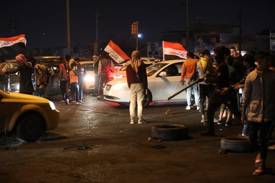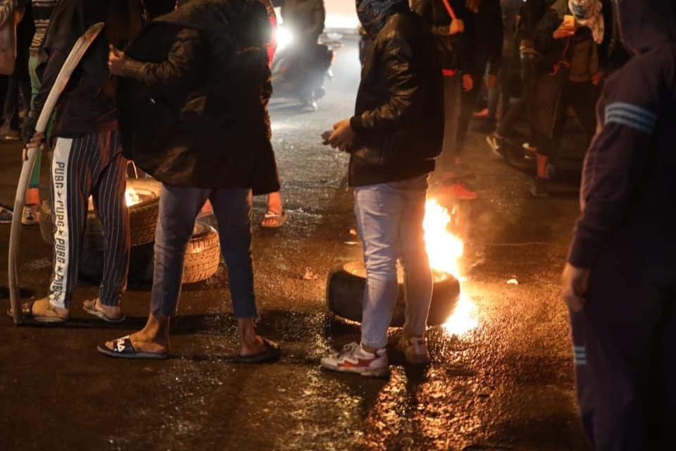 تنشر وكالة من كربلاء الخبر صور ل قيام عدد من المحتجين بحرق إطارات وسط محافظة البصرة