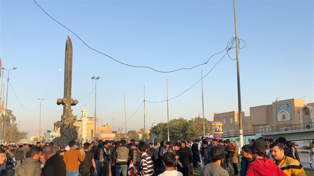 وتجمع عشرات المتظاهرين، عصر اليوم الجمعة، تحت مجسرات ثورة العشرين وسط محافظة النجف.