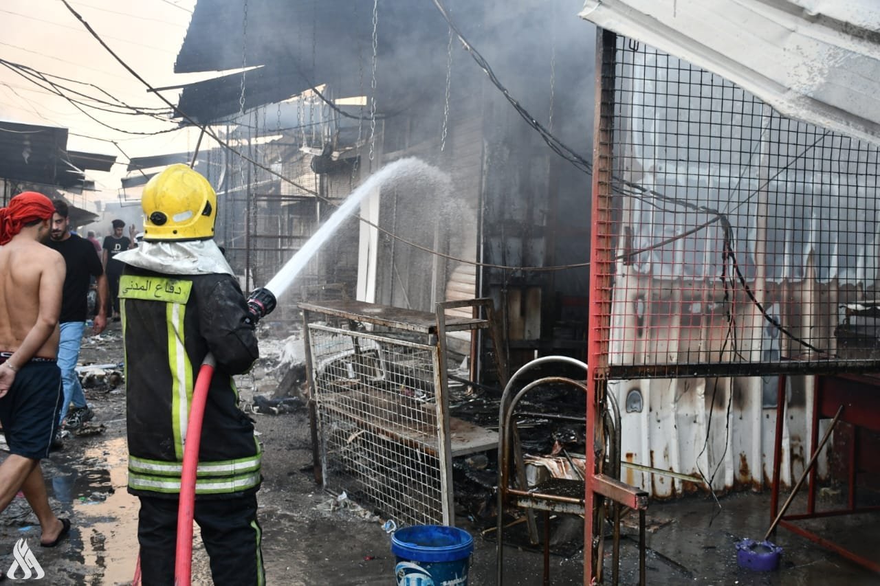 فرق الدفاع المدني تتمكن من إخماد حريق بسوق حي العامل في بغداد