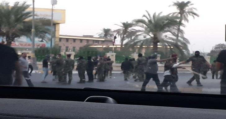 القوات الامنية تحاول تفريق تظاهرة قرب مبنى محافظة كربلاء
