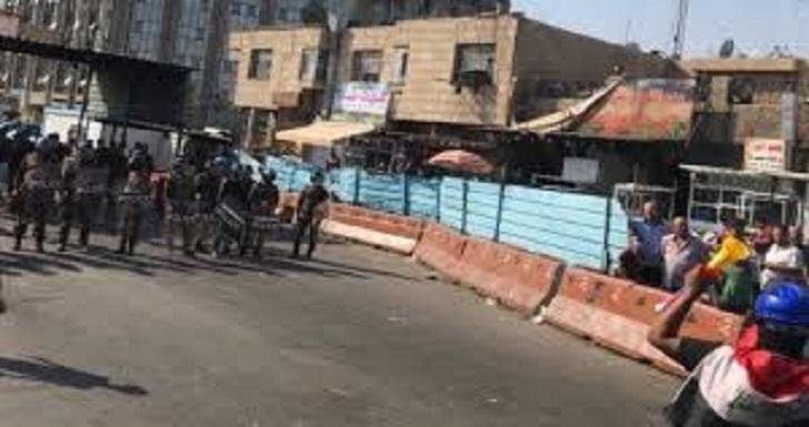 قوة من مكافحة الشغب تعتقل المفرزة الطبية قرب جسر السنك في بغداد