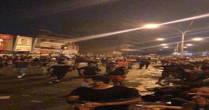 هياج كبير وهتافات وإطلاق مسيل للدموع بكثرة في ساحة التحرير