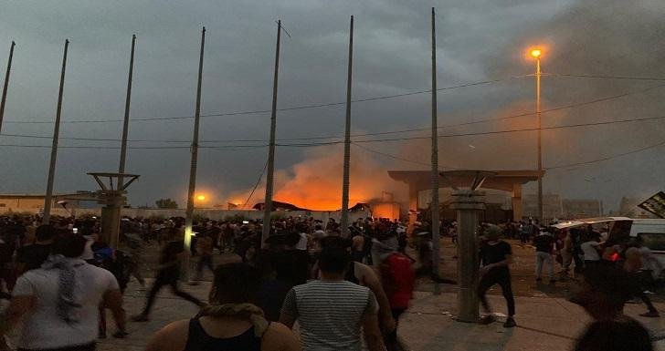 احراق الكرفانات الخاصة بحماية ديوان محافظة البصرة