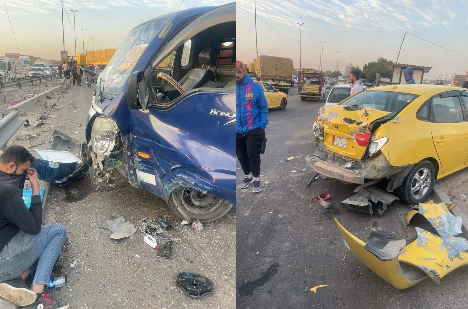 حادث مروع بين 8 سيارات قرب منطقة الدورة في بغداد
