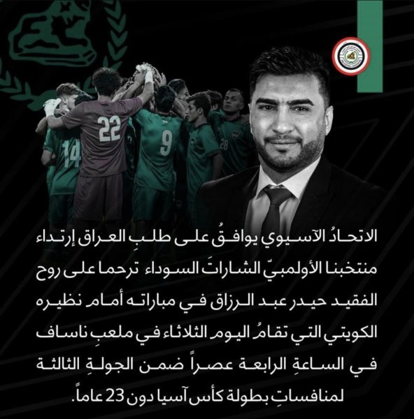 وافق الاتحاد الاسيوي بكرة القدم، على طلب المنتخب الاولمبي، بارتداء الشارات السوداء في مباراة الكويت.