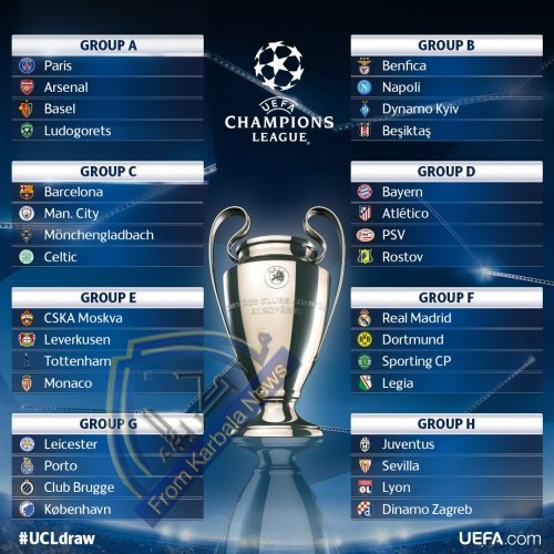 وسيكون بايرن ميونخ على موعد مع معركة نارية ضد مانشستر يونايتد في المجموعة الأولى، بجوار كوبنهاجن وجالطة سراي.