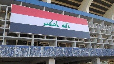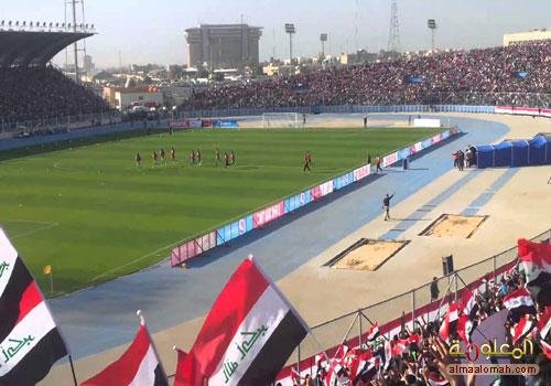 تزيين ملعب الشعب الدولي بعلم العراق بمدخله وفي أعلى المدرجات