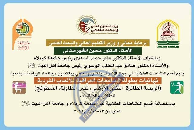 جامعات العراق في كربلاء للمشاركة في بطولة الألعاب الفردية