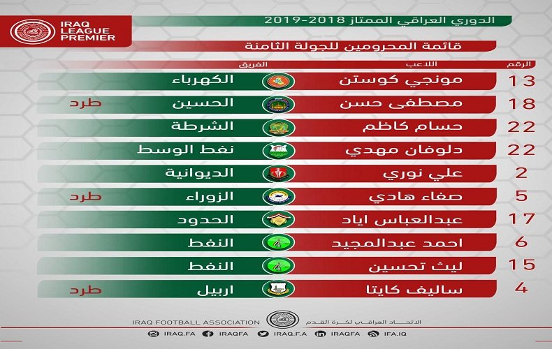 بالقائمة.. اللاعبون المحرومون من لعب الجولة الثامنة بالدوري الممتاز