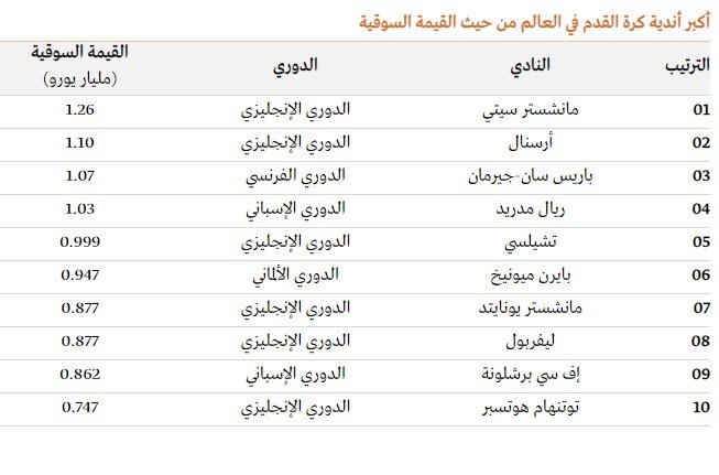 الكشف عن أكبر أندية كرة القدم في العالم من حيث القيمة السوقية