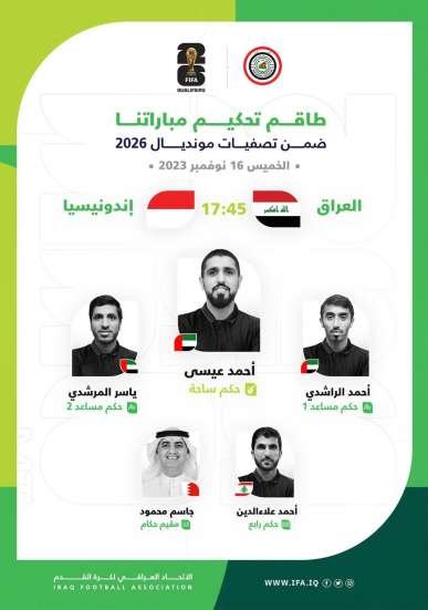تسمية طاقم تحكيم مباراة المنتخب الوطني ونظيره الإندونيسي