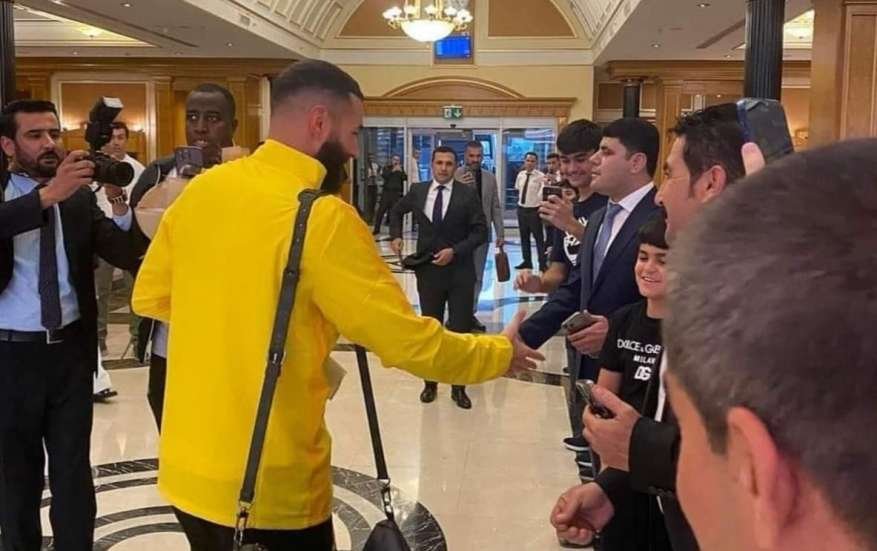 عراقيون يهدون بنزيما لوحة بصورته خطت عليها كلمات مسمارية