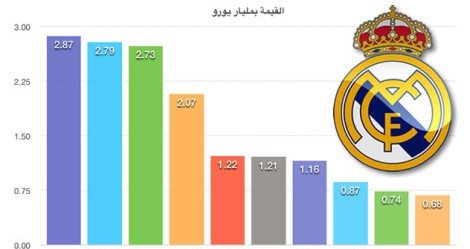 ريال مدريد ثانيا في أعلى الأندية قيمة