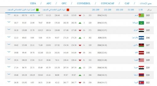 منتخبنا يتراجع 14 مرتبة في تصنيف الفيفا