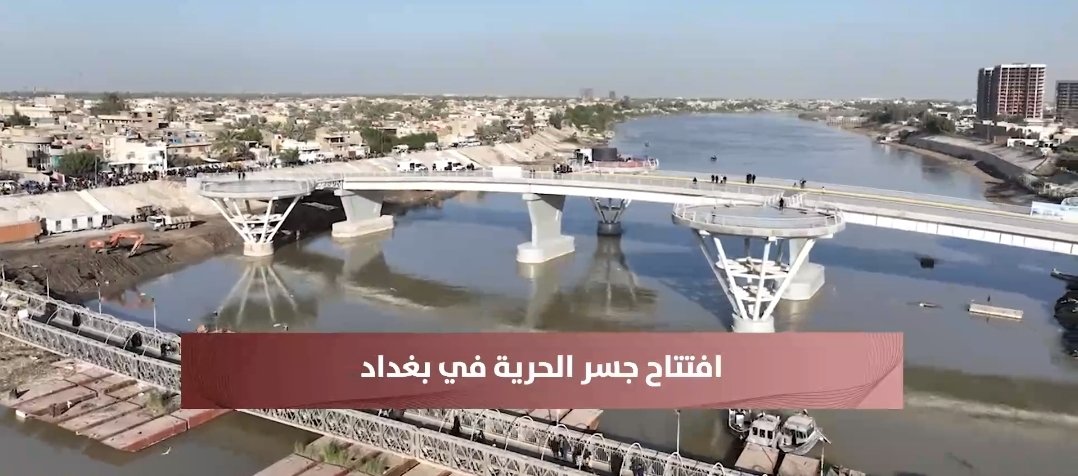 افتتاح جسر الحرية الرابط بين منطقتي الكريعات والكاظمية في بغداد ويعد جسر المشاة هذا هو الأول على نهر دجلة.